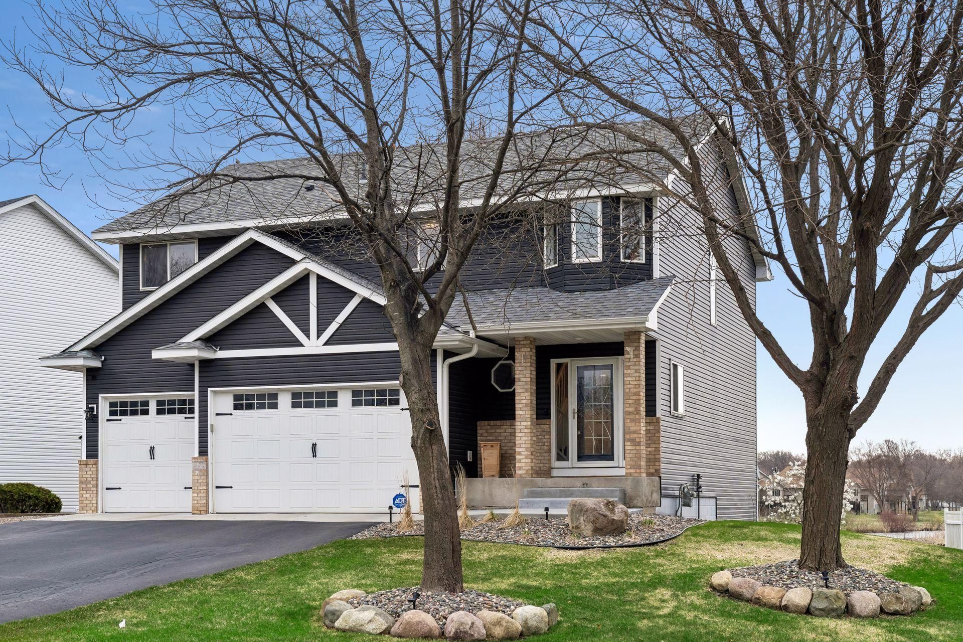 Stunning two-story walkout home in Blaine with year-round pond views and city-maintained walking trails, located near Blaine schools, TPC Golf Course, Blaine Super Rink, and a wide selection of shopping and dining. Curb appeal is impressive with a newer roof, siding, fascia, gutters, garage doors, a new parking pad, and fresh concrete steps, apron and sidewalk. The driveway has been freshly sealed and the entire front and side yard received new landscaping with boulders, river rock and new plantings; the irrigation/sprinkler system has been repaired and is well maintained. Inside, the main level features elegant engineered hardwood floors, recessed LED lighting, refreshed ceilings and upgraded light fixtures in the kitchen and dining area. The kitchen offers granite countertops, brand-new stainless-steel appliances and freshly painted cabinets. Laundry and bathrooms have been remodeled, and the upstairs has newer carpet and new blinds throughout (installed less than a month ago). Fresh paint was applied throughout the home, including all doors and trim, and the primary bedroom includes a new accent wall with decorative wall molding. The home also has a built-in speaker system for added ambiance! Enjoy outdoor living on the large composite deck with a great view of the pond; a well-maintained hot tub sits adjacent to the deck and a custom sectional built to fit the deck can remain with the house. The insulated, heated 3-car garage includes LED lighting and a built-in golf hitting area with a retractable net. The lower level is already framed and drywalled, offering a ready-to-finish space for your personal touch and additional living area. There is also additional plumbing to add another bathroom. This home combines move-in-ready updates, functional upgrades and excellent location ? schedule a showing to experience the pond views and all the recent improvements.