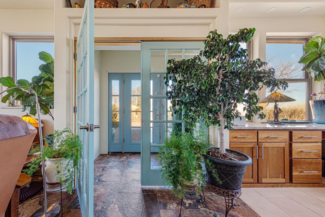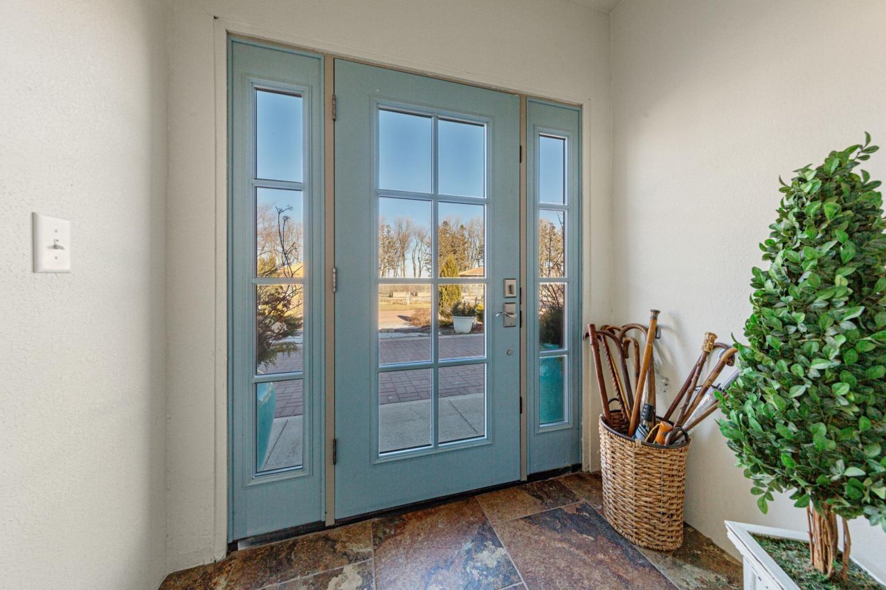 Single-level, ADA-friendly patio home on acreage with privacy, views, and modern finishes?ideal for out-of-state buyers seeking acountry retreat with accessibility and low-maintenance living. Enjoy thoughtfully designed 3-bedroom, 4-bath, true single-story living on approximately 4.47 acres, with no steps or stairways, extra-wide hallways and doorways, raised outlets, lever handles, and no neighbor within about a half mile, offering exceptional privacy plus sweeping sunrise and sunset views over open countryside. An open-concept floor plan connects the kitchen, dining, and living areas, where oversized windows in nearly every room, top-down/bottom-up blinds, and granite windowsills frame horizon views and fill the home withnatural light?perfect for nature lovers and remote workers seeking a peaceful setting. The chef's kitchen is built for everyday living and entertaining, featuring quartzite granite countertops, peninsula seating for four, custom cherry cabinets with maple doors, stainless steel GE 5-burner cooktop, Bosch dishwasher, KitchenAid double convection wall ovens, semi-pro vent hood, and a walk-in butler's pantry with second oversized refrigerator, prep sink,cabinet built-ins, and RO water with remineralization serving both the kitchen drinking faucet and the steam shower. In-floor radiant heat throughout thehome and attached garage, hard-surface porcelain tile and stained concrete flooring, bullnosed corners, and energy-conscious design support comfortable,low-maintenance living?highly desirable for retirees and snowbirds looking for a lock-and-leave style property. Each bedroom has its own private en-suitebathroom with blocking for future grab bars, making this an excellent option for aging in place or buyers needing accessible features. The primary suiteadds a custom tiled steam shower with built-in seating and a jetted soaking tub, creating a spa-like primary bathroom that appeals to wellness-focused and luxury-minded buyers. Additional spaces include a cozy den/reading room with door to a side patio, a well-appointed laundry room with granite-topped cabinetry and raised front-load washer and dryer, and an attached heated garage with stained concrete floor and dedicated storm-shelter-ideal for Midwestern weather peace of mind. The garage is completely finished complete with even granite window sills and transitions to the interior space effortlessly. Outside, this country property offers a detached powered workshop with wood-burning stove, a greenhouse for gardening enthusiasts, a pool area with quality filtration and heating equipment, patios, and landscaped yard?great for outdoor living, homesteading, hobbies, and enjoying nature and wildlife. Despite the private rural setting, the home remains conveniently located: approximately a 20-minute drive to Worthington for hospital/medical care, groceries, and everyday shopping, about an hour to Sioux Falls, around an hour to an hour and a half to the Okoboji Lakes recreatio