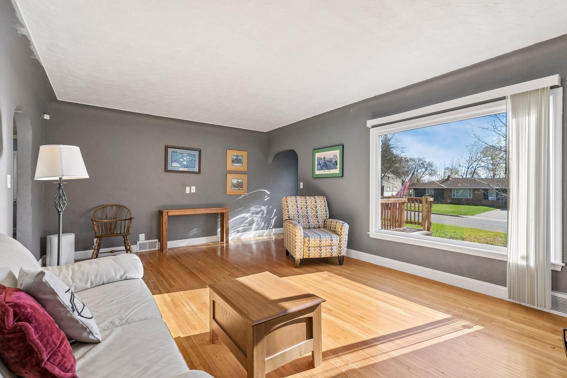 Don't miss this great opportunity for a good-sized Maplewood story and a half home. Classic architectural features you love ? hardwood floors, archways and cove ceilings! Large living room with woodburning fireplace and giant picture window. The separate dining room offers great entertaining space ? open to the kitchen and access to the Sun Room. The kitchen provides great work space, stainless appliances (all stay), ample windows and plenty of cupboard and cabinet space. 2 main level bedrooms and a full bath in-between. Upstairs you'll find plenty of headroom, an enormous bedroom and bonus office / nursery space. Lower level boasts ample space for projects, workout, storage, laundry or future finished space + there's a ¼ bath. Furnace and central air updated 2023. On-demand water heater 2026. Water softener 2025. Structurally and mechanically solid, do a little cosmetic updating to make it yours. Lovely backyard is partially fenced and 2 decks (front and back). Oversized 2 car garage ? with concrete driveway. Home has been pre-inspected