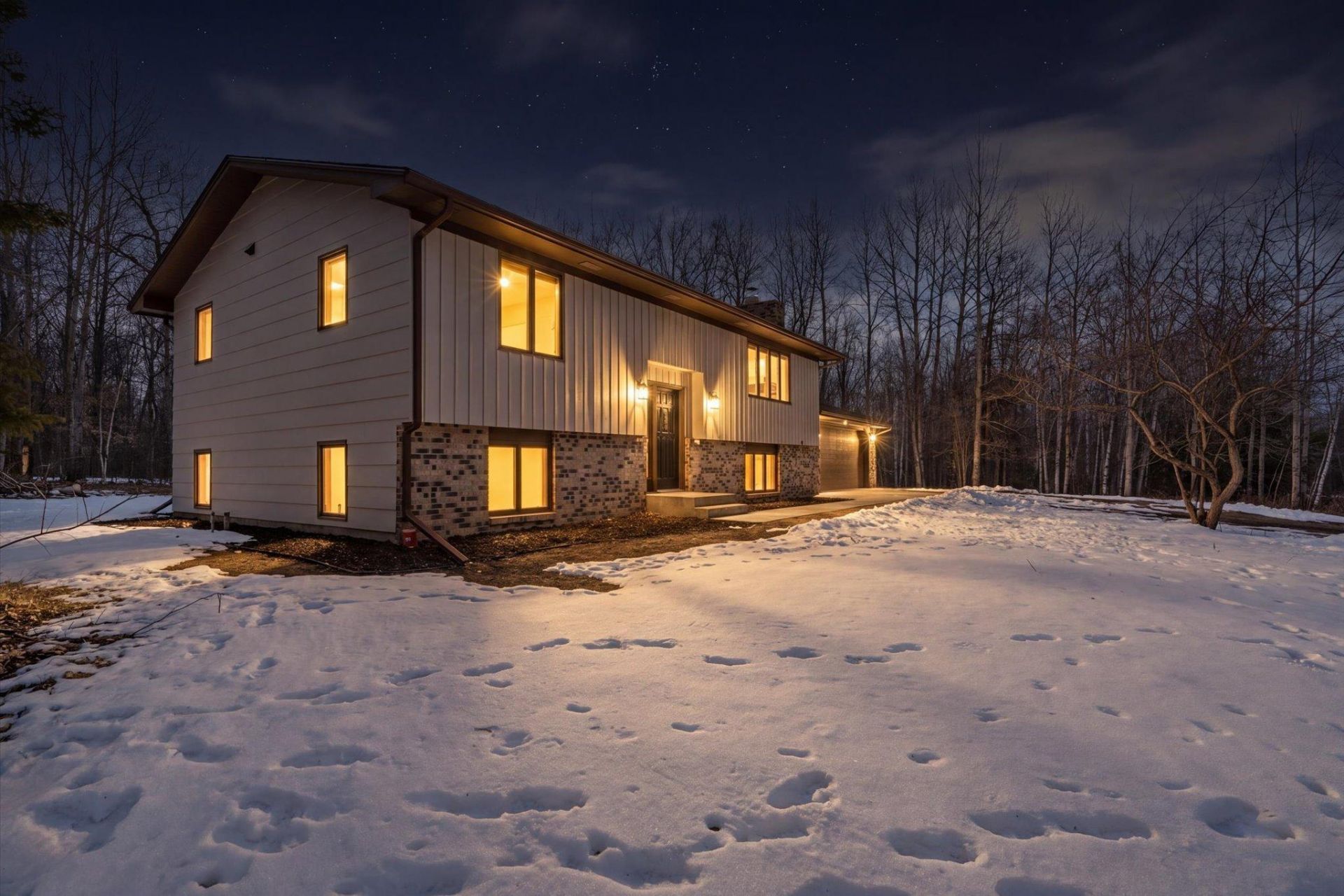 Modern updates and timeless style set on 2.5 acres?this beautifully remodeled home near Bass Lake checks all the boxes. With a total of 4 bedrooms and 2 baths, the main level offers two bedrooms and a full bath with double sinks and a tiled tub/shower. The open-concept layout highlights a stunning kitchen with custom walnut cabinetry, workstation sink, and center island, flowing into the dining area with access to the backyard deck?great for barbeques. A bright, spacious living room ties it all together. The lower level includes two additional bedrooms, a 0.75 bath with full-size tiled shower, and a family room with a fireplace feature. You'll also appreciate the laundry/utility room with direct access to the attached garage for added convenience. This home has fresh paint, all new flooring, trim, and doors throughout, making it move-in ready and eager for new memories to be made. Brand new mound sewer installed in 2020. New roof in fall of 2025. Brand new deck off the kitchen!