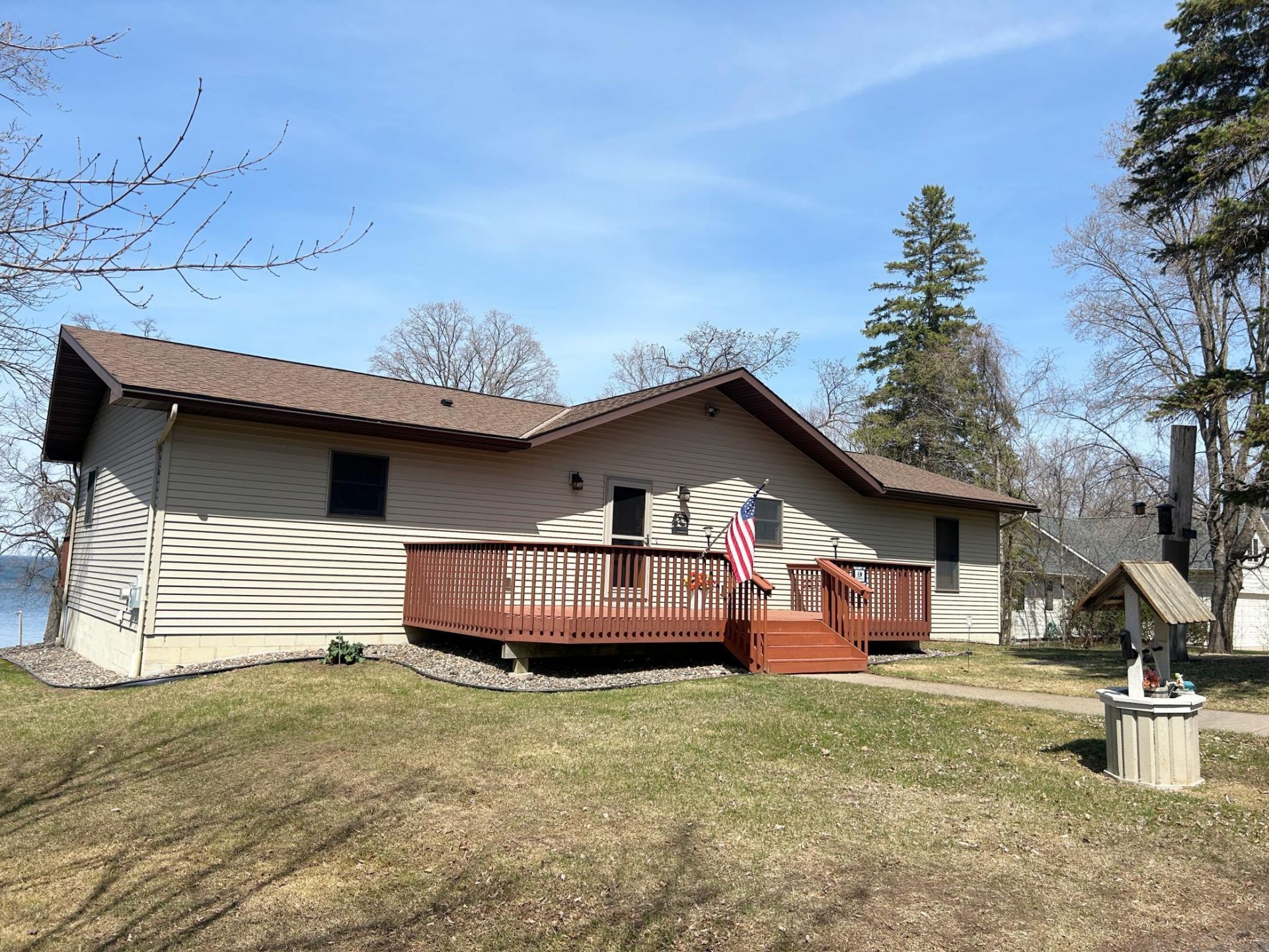 Extraordinary MilleLacs Lake home/property on a northwest facing lot, that captures the most striking sunsets and views you can imagine! Nice & private lot...the soft green lawn has the gentlest of slopes to the level lakeshore where you'll take delight in the approx. 115' of rock/hard lakeshore. You'll be drawn out to the full lakeside deck from 3 different patio exit door options to sit down and relax morning, noon or night while your eyes feast on those views and sunsets. This great big 5BR 3BA home has so much space with a pleasing main floor great room layout w/vaulted T&G ceiling, and offers main floor living including a primary bedroom suite w/laundry inside the primary walk-in closet. Large useful rooms downstairs as well, including family room, 2 more bedrooms and a full bathroom, a storage/hobby room space of considerable size, as well as bountiful storage opportunity. Forced air upstairs PLUS in-floor boiler heat downstairs and on-demand water heater will keep you cozy warm in the winter. Maintenance free steel siding, and leaf gutters added. The 1st stall of the 4-car garage is a finished/insulated and heated shop space. You will readily notice the $15k the seller has put into shoreline improvement. Dock included. Furnishings negotiable. Midco internet.